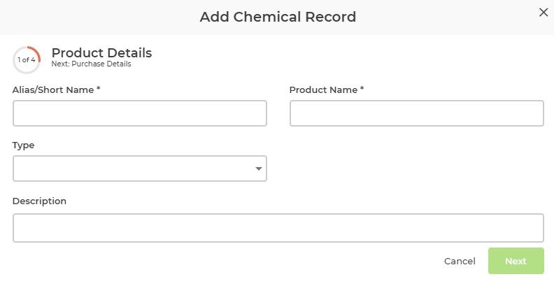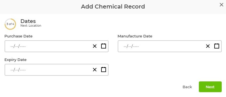 Step 3: A pop-up box will open where you can fill in the chemical’s details. Click the Next button once you have filled in this information.
