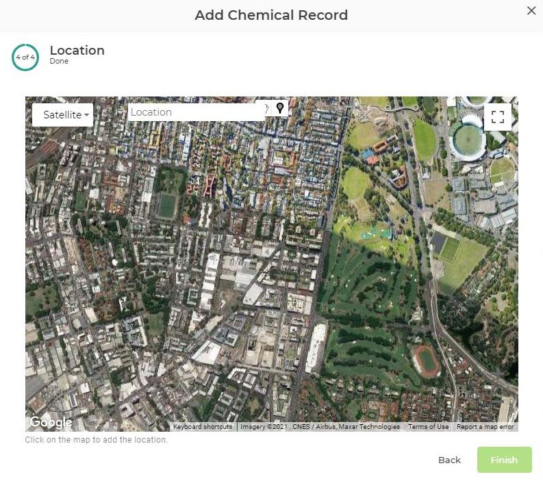 Step 6: Fill in the location of where you store your chemicals. Click Finished to add this to your Chemicals Record Inventory tab.