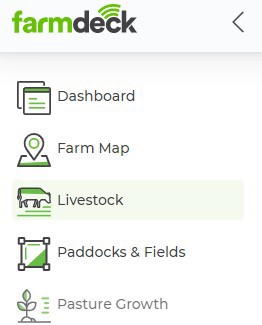 Step 1: Navigate to the main menu on the left-hand side of the page. Scroll down and click on the Livestock button.