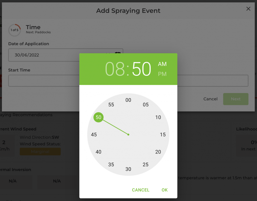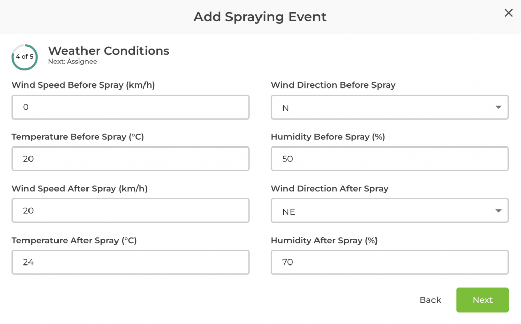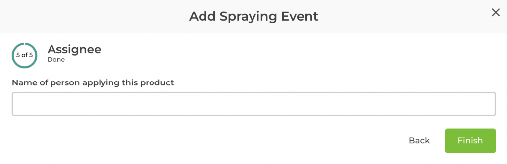 Step 7: Fill in the assignee details and click Finish to add a spraying condition event to your paddock.