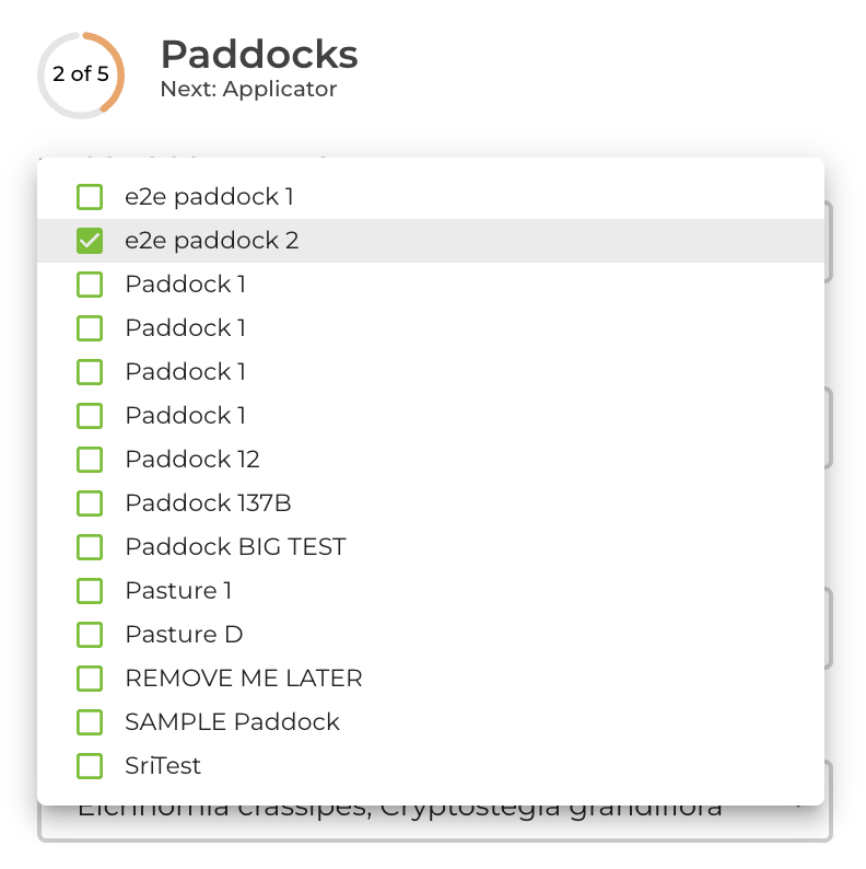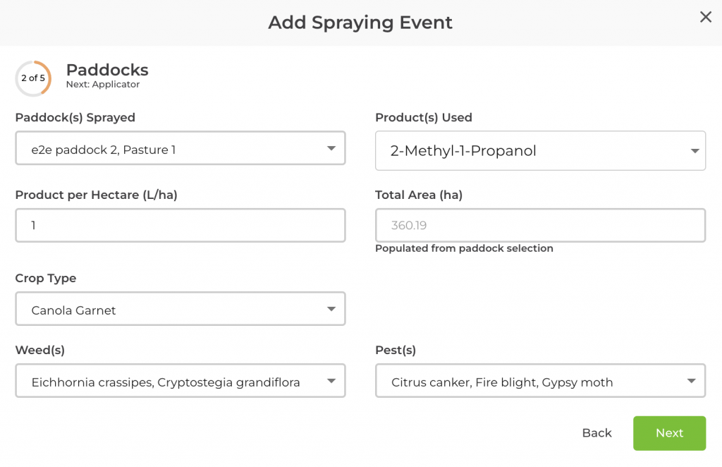 Step 4: You will then need to fill in the required paddock information. You can select multiple paddocks, weeds and pests. Click Next once you have done this.