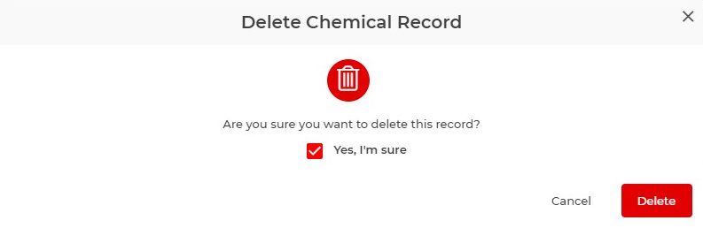 Tick the Yes, I’m sure box and click Delete to delete this Chemical Record.