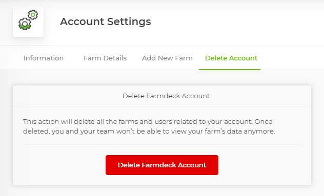 Click on the Delete Farmdeck Account.