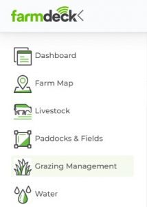 Step 1: Navigate to the main menu on the left-hand side of the page. Scroll down and click on the Grazing Management button.