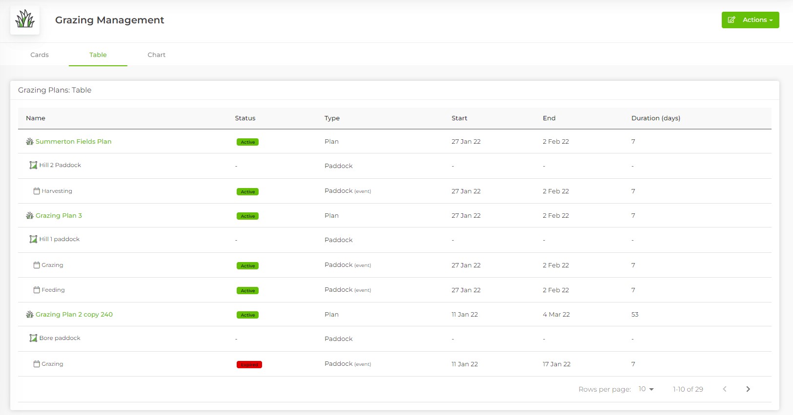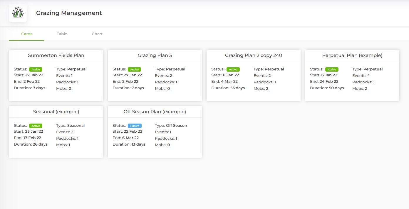 Step 2: When your Grazing Management main page opens, you can change between three views.